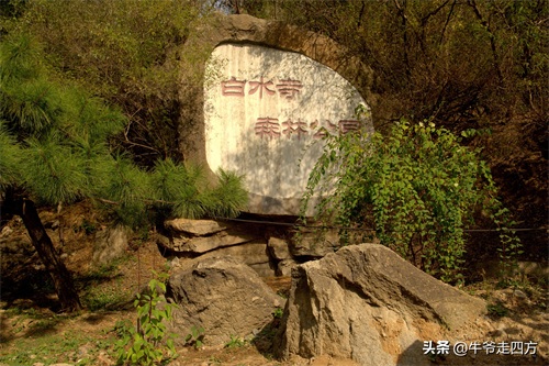 再往前行就看到了一块“白水寺森林公园”的标识碑。这里就是公园的南门。