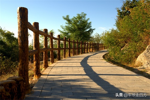 早上八点多钟,路上几乎没有什么游客,天气晴朗,步道平整,外侧立着仿木的护栏,视觉效果不错。