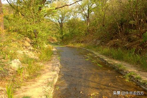 过了白水桥一直前行,到北端向右前行百米左右,栈道就没有了,可以步行进山。因为刚刚从山上下来,所以转到白水的外侧,沿着水路往西南方向行走。