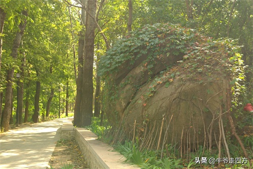 “龙脊路”景观——有奇石神似笔砚,借“天造石砚”,营造“神来之笔”气壮山河的“谱写春秋,展现文化”。诗意化的景观空间,展现园林艺术和历史文化内涵,给人以无限遐想,突出了文化建园的思想。