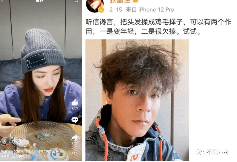 今年一月,因为蔡文静和张嘉佳晒出的视频背景有点相似,还有人问是不是复合了?