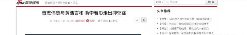 新浪网——曾志伟愿与黄浩言和 助李若彤走出抑郁症