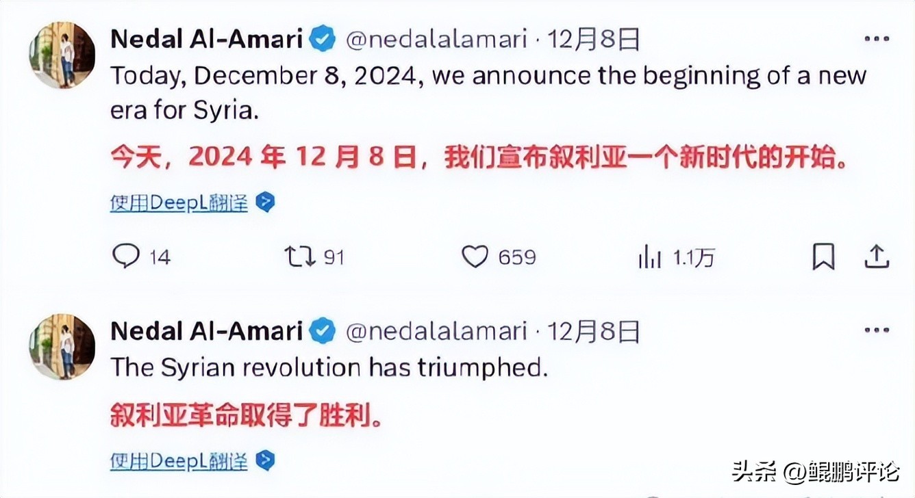 这个说法,和美国是一模一样的。阿萨德政府倒台,拜登发声明说,阿萨德政权的终结,对叙利亚人民来说是一个历史性时刻。你看,人家拜登只说历史,都没说自由皿煮的历史,下面的人给你猛加私货。