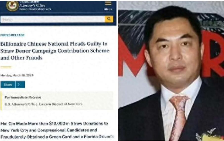 2023年10月2日,覃辉在纽约的法院承认了几项罪名,比如用别人的名字捐钱给政治,骗取移民身份,还有用假证件之类的。