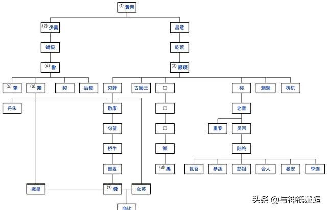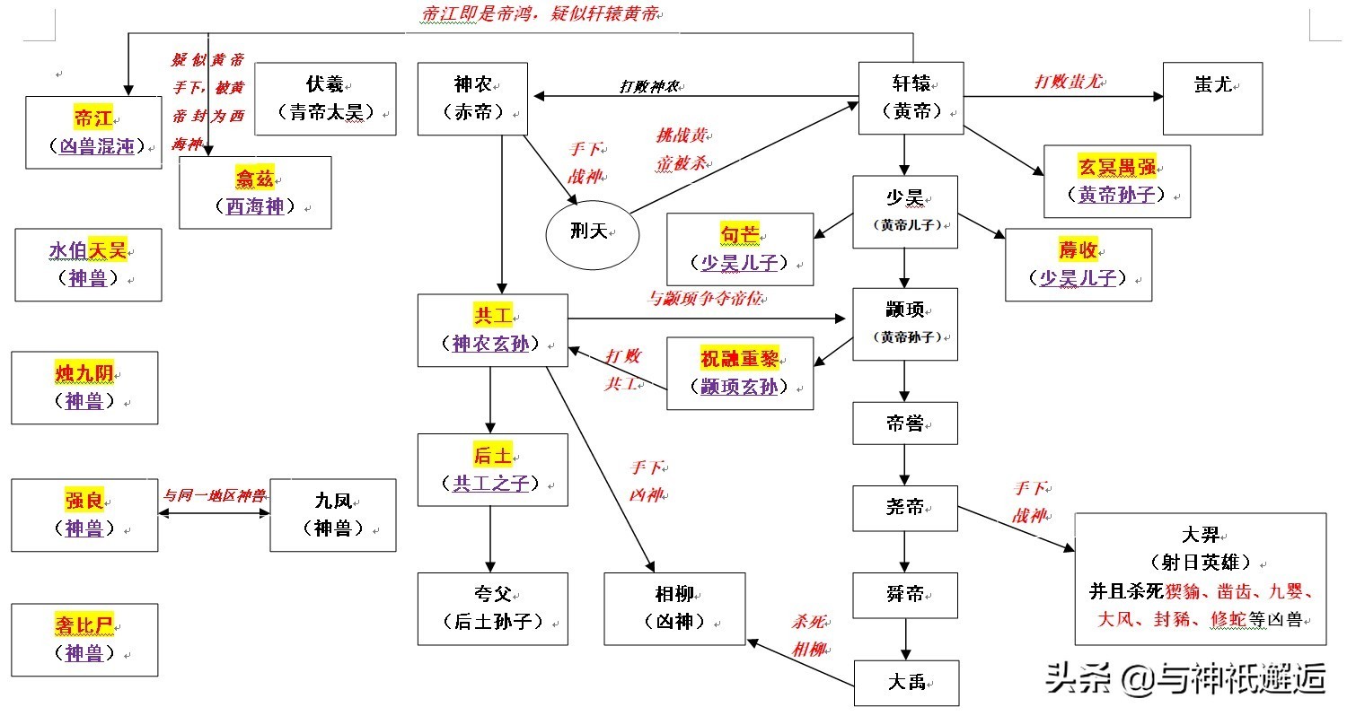 我初步梳理了12位远古神灵与三皇五帝的关系图,包含其他重要的几位大神: