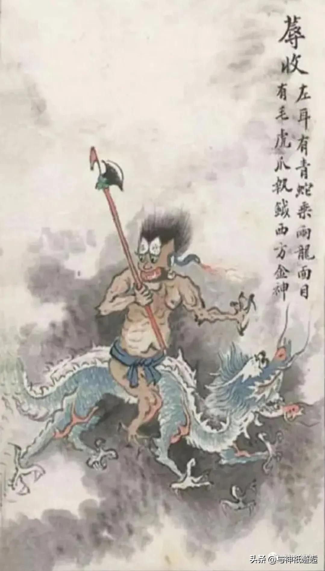 由此看来,形象上金神蓐收、木神句芒是兄弟两个都是相似的“乘两龙”,地位也相同,分别是东方和西方天帝的辅助神。
