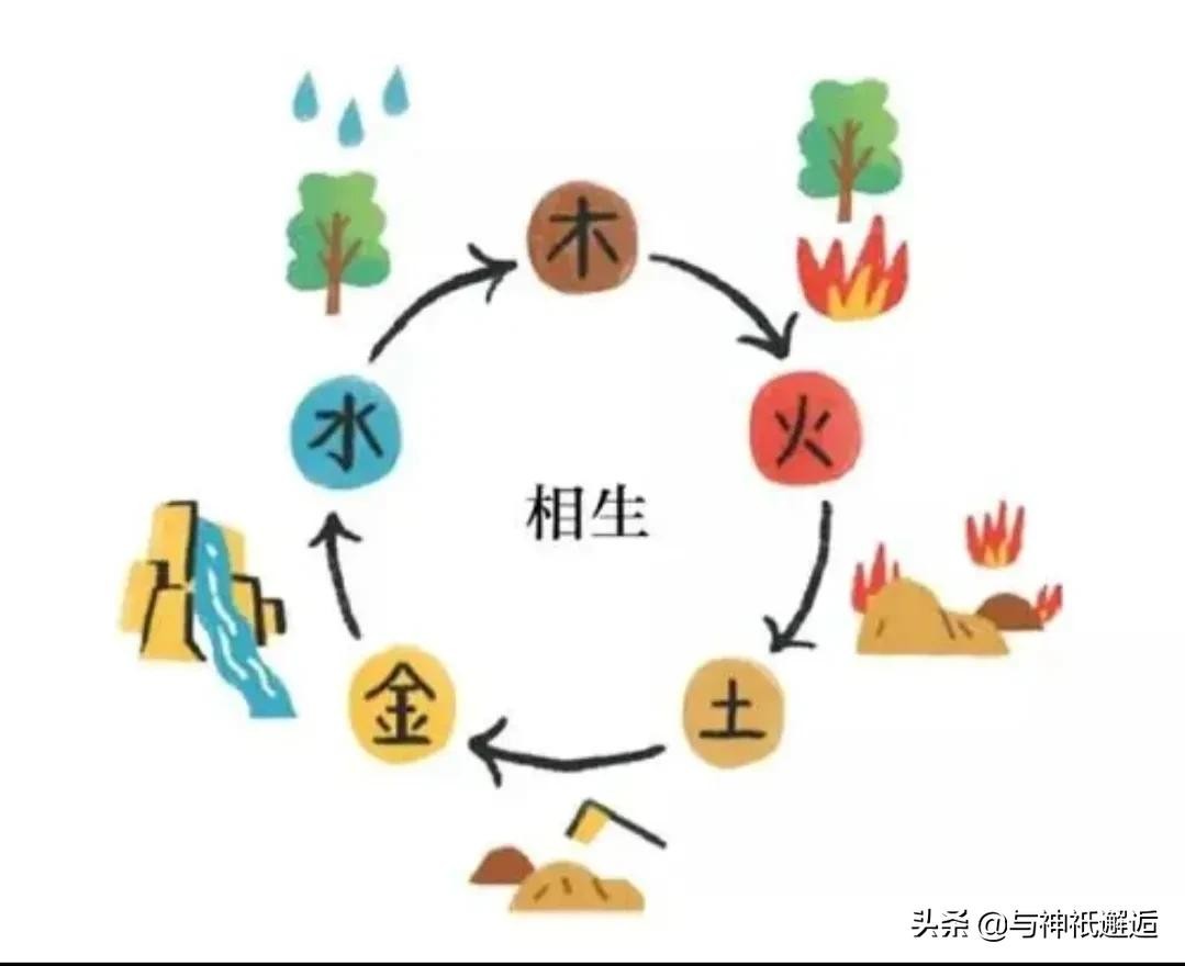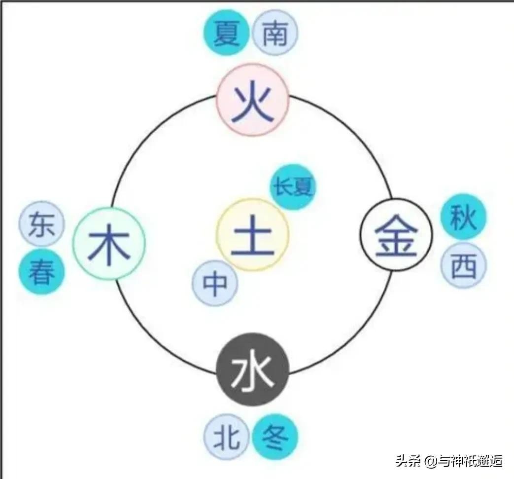 由此可见,按照中国五德五行理论,木生火、火生土、土生金、金生水、水生木,对应春(东方木)→夏(南方火)→长夏(中央土)→秋(西方金)→冬天(北方水)→春(东方木)的循环。