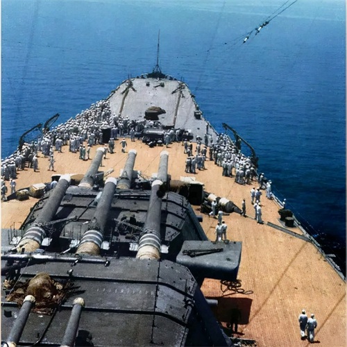 1944年6月,武藏号正式参战,武藏号与大和号一同参加了马里亚纳海战,但是战绩并不理想。同年的10月,武藏号又参加了莱特湾海战,但是被美军发现了。这两场战役中,美军的“依阿华号”战列舰也有参战。