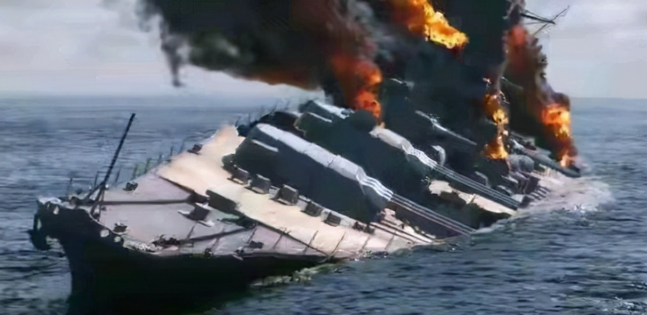 到了晚上的19点15分,由于军舰的受伤程度太高,已经抢修不过来了,其左倾度已经达到了12度,这时已是无力回天,索性舰长下令弃舰。19点30分,舰体左倾度达到了30度,舰体也翻了个底朝天。而弹药舱中的炮弹也不知何原因发生了爆炸。