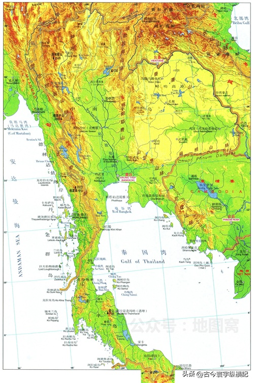 南亚各国地形图——