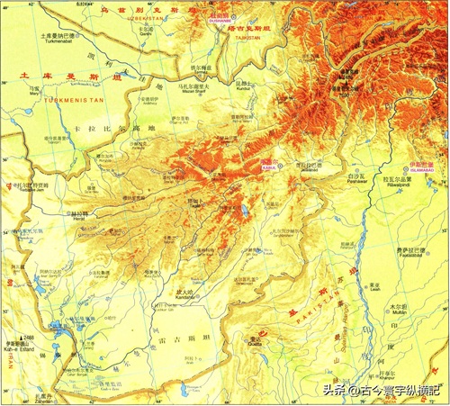 中亚各国地形图——