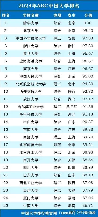 清华大学蝉联第1,北京大学第2,中国科学技术大学、浙江大学并列第3,复旦大学、上海交通大学、南京大学并列第5,中国人民大学第8,北京航空航天大学第9,西安交通大学第10。