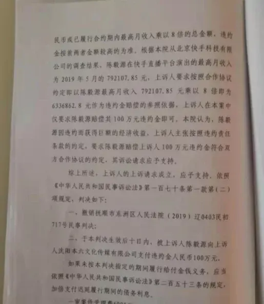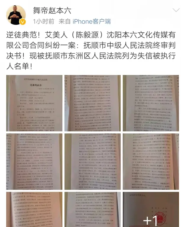 鹤岗一战,赵本六彻底消失在了网络之上,上次的主播封禁名单上赵本六赫然在列,都说天作孽尤可为,自作孽不可活,赵本六落到如今的这个下场纯属是自己做的,这个还真的怪不了谁,虽然之前赵本六数次发出道歉信,但是似乎并没有什么效果,已经被各大平台视为弃子,不过不知道咋的,今天赵本六晒出了一份判决书,是赵本六状告自己徒弟的,似乎是徒弟违约了,然后被判赔了100万还要承担2万多的律师费啥的,不过应该是没有按照约定履行,现在赵本六的这位徒弟已经被列为了失信人,和当初的刘一手如出一辙!