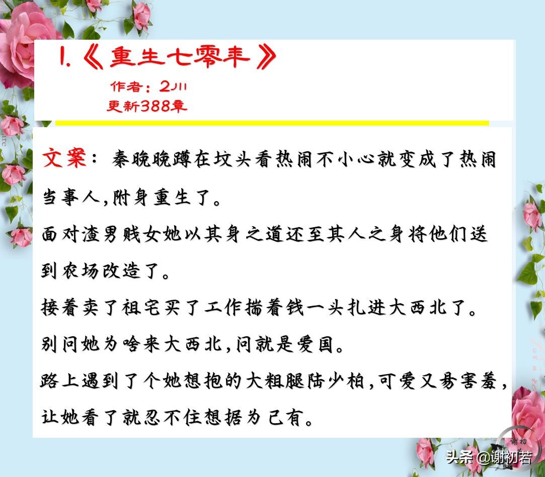 点评:这个题材好新颖,看到最新章了,描写的很刺激身临其境,男女主都很普通,不是那种男强女强的模版文,但是都很有特色,女主很善良,简简单单的更让人有带入感。就是一个普通人的重生穿越跟另一个优秀的普通人的恋爱故事。