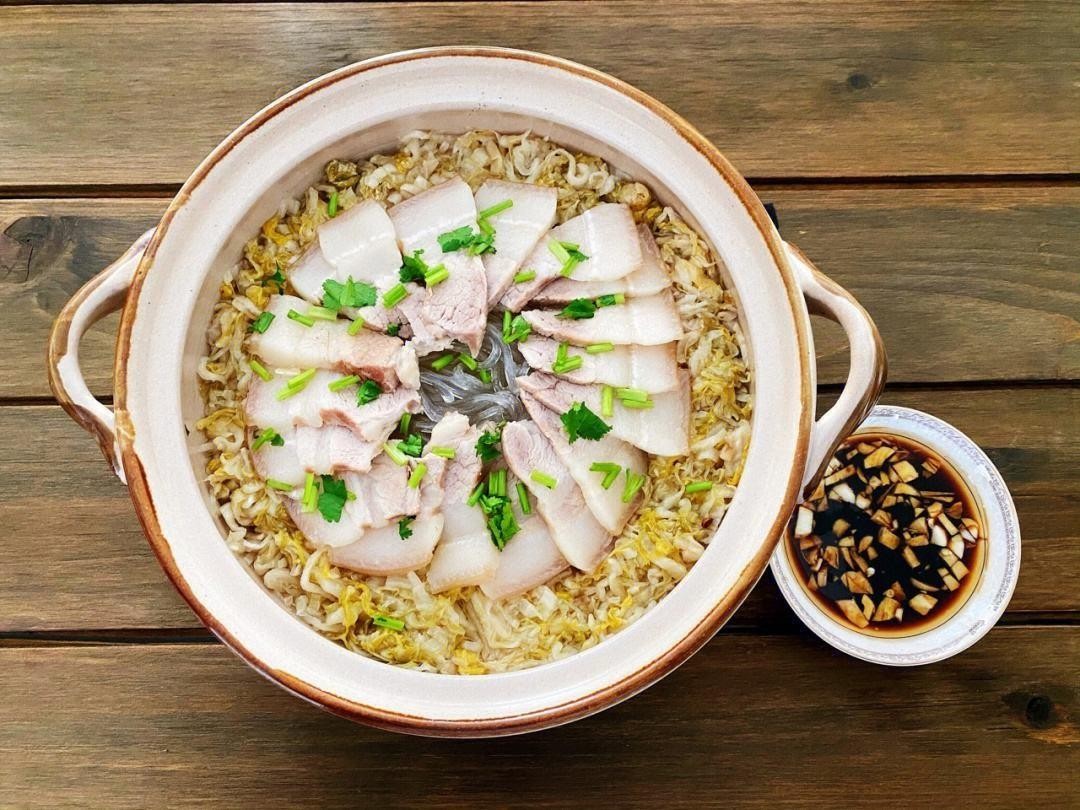 东北酸菜炖肉:这是一道以酸菜为主料,加入猪肉和土豆等蔬菜炖制而成的菜肴。口感酸甜爽口,肉质鲜嫩,是东北地区家庭聚餐的常见菜肴。