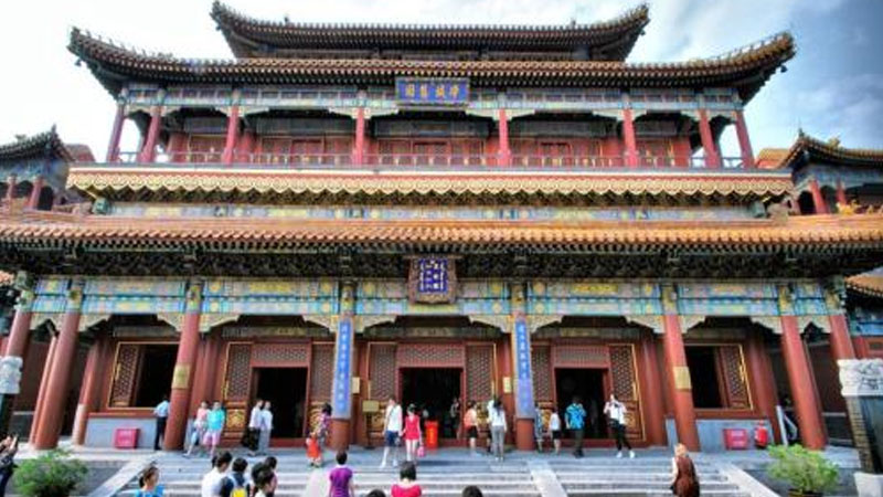 入寺门后,不宜中央直行,进退俱当顺着个人的左臂迄边行走。入殿门里,帽及手杖自提携或寄放他室为佳。切勿放在佛案上。大殿中央拜垫是寺主用的不可在上礼拜,宜向两旁的垫凳分男左女右去礼拜;凡有人礼拜,不可在他的前头走过。雍和宫是清朝雍正皇帝即位前的王府。清乾隆九年,即公元1744年,乾隆皇帝钦派他的同窗好友三世章嘉活佛把雍和宫改建为藏传佛教寺庙。