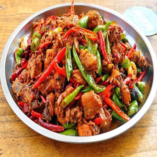 6,炒至烂熟后,再下入青红椒翻炒一分钟,加盐,鸡精炒均匀出锅。