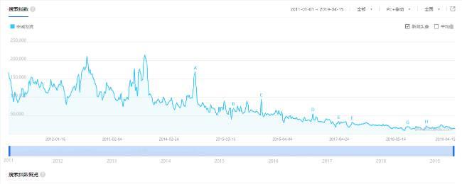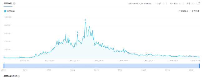 上图能看出《非诚勿扰》的火爆时间,处在2012年到2013年间,后面2014年有过小爆发,但长期是处于下滑状态,没有什么反弹。