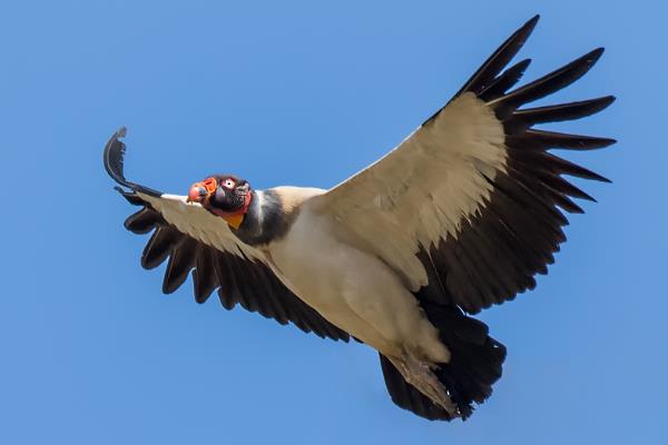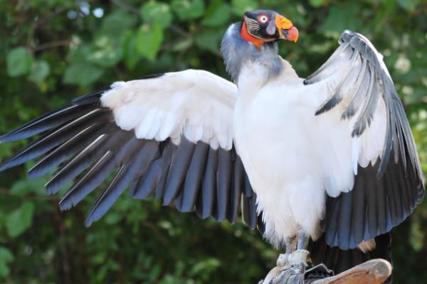 王鹫是一种美州的庞大鹫鸟,最大翼展可达1.98米,属于鹫鸟中脸色最鲜明的一种,它的浑身固然都是白色的羽毛,然而是它的头颅皮肤上却戴有红黄蓝紫乌五种脸色,而且喙上还长有黄色的肉冠,更加是成年后的王鹫脸色更鲜明。