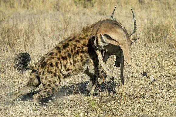 要知道,斑鬣狗捕食猎物时,并不是一上来就直接掏肛的。