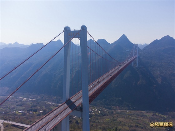坝陵河大桥主跨长1088米,桥梁全长2237米,是“国内第一,世界第六”的大跨径钢桁梁悬索桥。