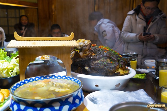 到贵州必须吃一次关岭牛肉,这次我们打卡了这家生态牛庄,顾名思义这是一家主打吃牛肉的生态餐厅,整家餐厅的占地面积大,整体装修风格走复古风,环境干净卫生,菜品繁多品相精致,有牛黄金、雪花牛肉、西冷牛肉、牛百叶、牛毛肚等等,牛肉的鲜嫩爽口直击味蕾,十分美味。饭局中还有当地的敬酒歌,非常棒的体验。