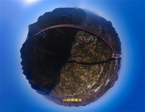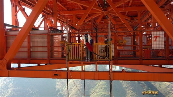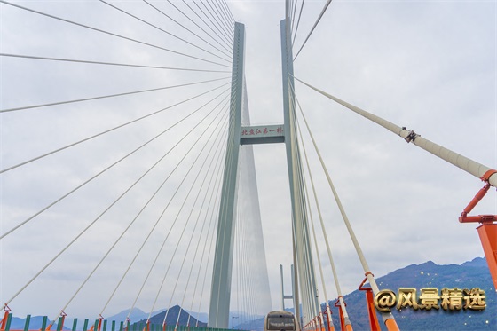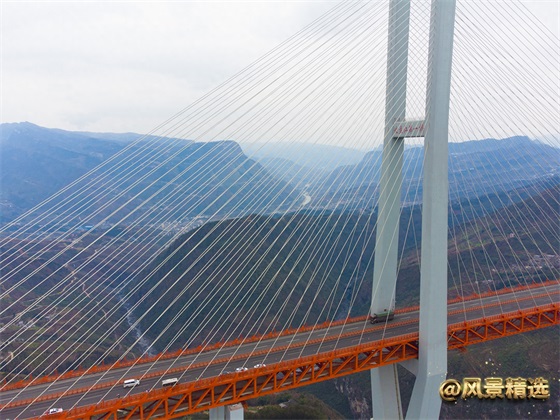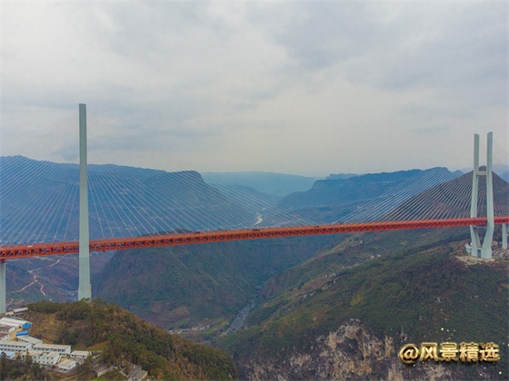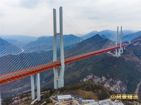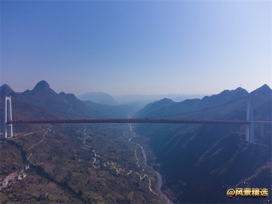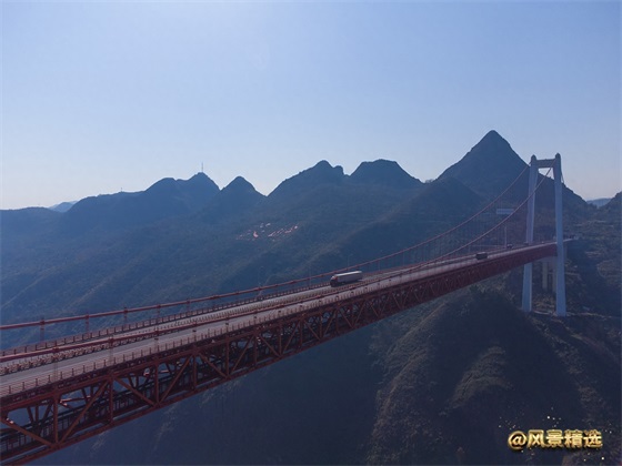 大桥全长1341米,桥面到谷底垂直高度为565米,是真正的云端上的大桥,它代表着真正的中国制造。在桥上俯瞰着水墨画般的绚丽风景,群山环绕,白云连绵,仙气十足。风景绚丽是真的,站桥上心跳加速的感觉也是真的。
