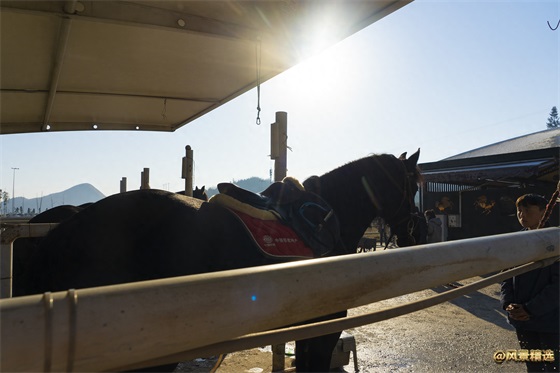 从踏雪飞燕的奇妙幻想到汗血宝马的美丽传说,从关云长的赤兔马到朱德的小黑马,都与我们息息相连,如果你有一个骑士梦,黄果树▪奇遇岭马术场是你的不二之选,它是贵州省少有的特大且专业的马术场,这里的马匹都是从欧洲进口的纯温种马,马匹都很温顺,体验贵族运动不再是奢望。骑马是一项耗体力的运动,一圈下来就气喘吁吁了,在马术场可以拍很多骑马的照片。