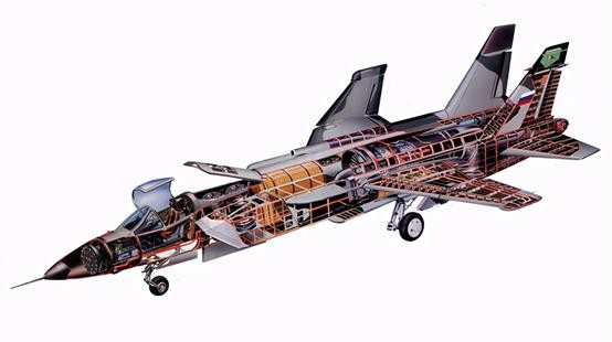 雅克-141的外形和之前的米格-25有很多相似的地方,包括两侧进气上单翼布局,以及前机身的整个轮廓和线条,有时候从正面看上去,不细看的话一时还真分辩不出来。不过转到屁股后面就一目了然了,为了避开那个可以旋转变向的喷口,机尾开了个大叉,用类似悬臂梁的方式把两片垂尾支起来,内侧与发动机尾焰接触的部分使用了耐高温的钛合金。反而是从之前雅克-38上继承的并不多,除了两台升力发动机的布置,基本只有那套自动弹射系统了。经过试飞,雅克-141最高速度超过1.4马赫,航程达到2100公里,实用升限15500米,飞行员给出了好评,认为飞机反应灵敏、具有出色的战斗机性能。