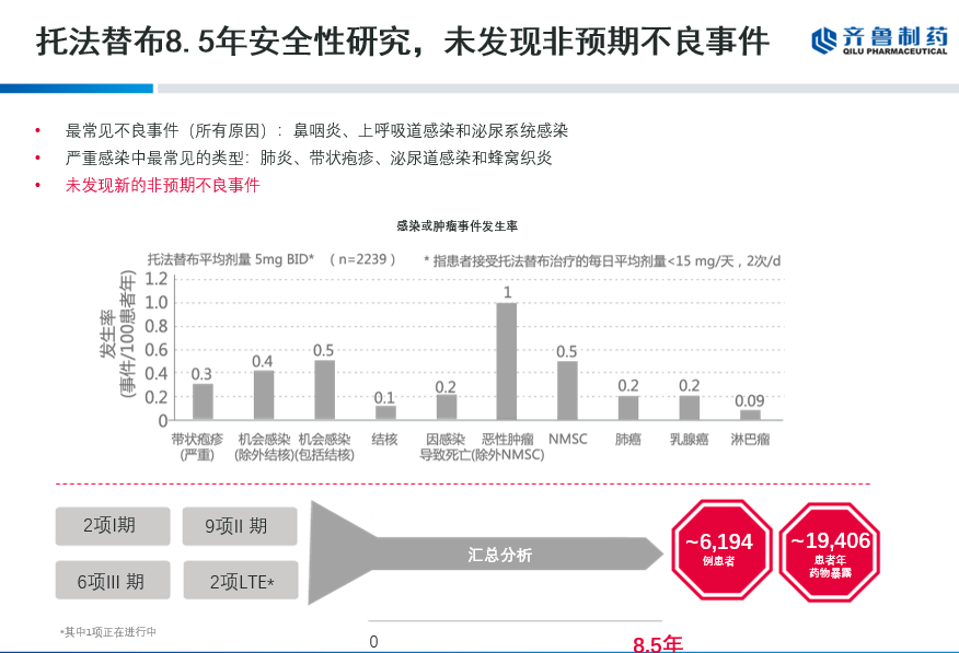 因为类风湿性关节炎是很难做到彻底治愈的,所以这种疾病也需要做好长期治疗和养护的准备,而根据托法替布的长时间临床数据显示,其4年的疗效持续稳定,并且根据8.5年的安全性研究显示,并没有发现任何未预期情况下的不良反应。