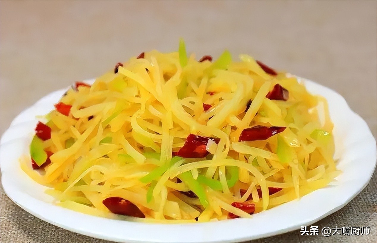 其实,别觉得炒土豆丝很简单,其中有很多不起眼的技巧,很多饭店招聘厨师,试菜时就是炒土豆丝,这道菜炒得好,工资就不愁了。今天我就和大家分享一下大厨炒土豆丝的技巧,学会后炒得和饭店里一样好吃,又香又脆,酸辣入味。