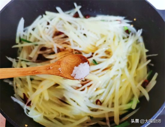 炒土豆丝怎样做?最忌切好直接下锅,多做2步,洁白爽脆不粘锅