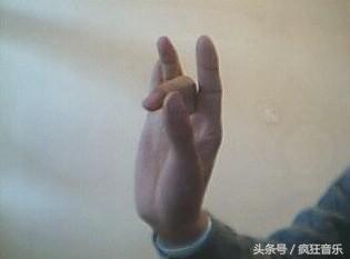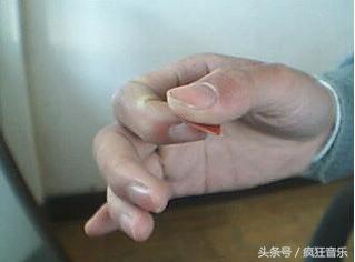 首先将拇指和食指交叉成90度,将拨片轻轻的捏在两指之间,拨片的尖端与大拇指伸出的方向垂直,大拇指给拨片提供一个面,用拇指和食指的指尖夹着拨片。