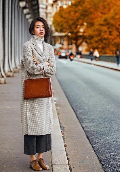 米灰色大衣+白色搭配,给人整体的感觉:清澈、雅致、明亮,一份迎面袭来的是绝对的清新和干净;米灰色大衣+黑色搭配,是一份温婉、柔和与洒脱、干练的融合,营造出的是一份帅气和冷艳俏丽的美感。
