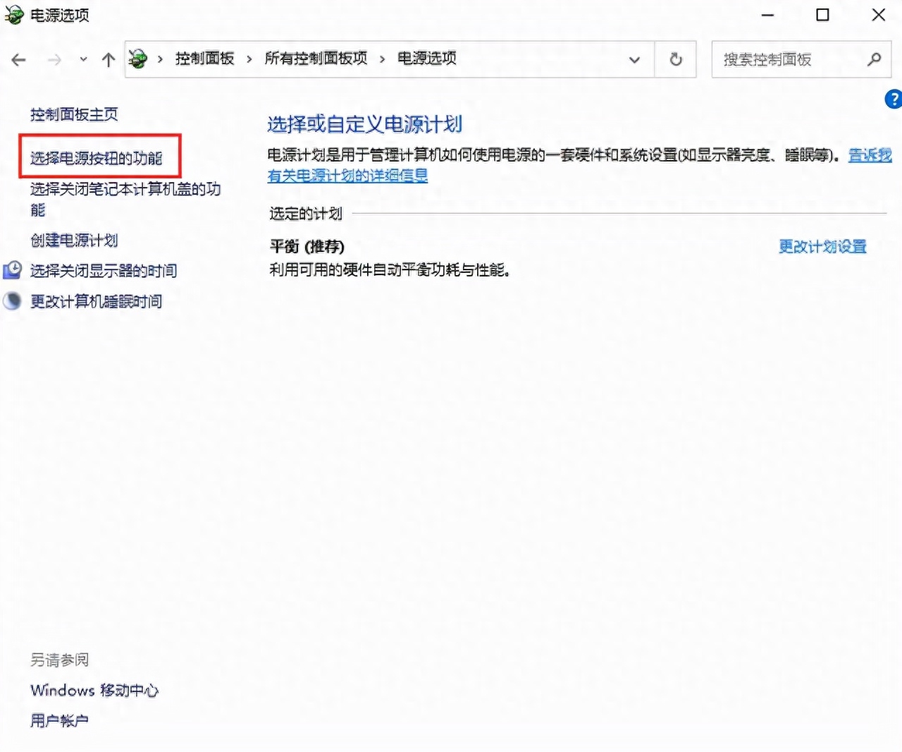 3、在电源选项界面左侧找到“选择电源按钮功能”;