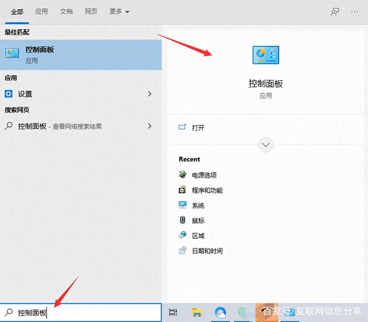 1、在电脑系统桌面左下方搜索“控制面板”并点击进入;