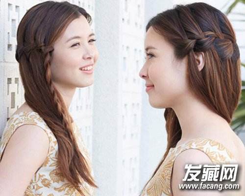 最后这种发型适合短头发的女生先将额头前侧分出一小缕的头发,将这缕头发编成麻花辫,用小皮筋扎好,用食指和大拇指从辫子的缝隙中穿入,捏住后方的一缕头发从缝隙中穿出,每一个缝隙都这样做,最后美美的瀑布式编发就。