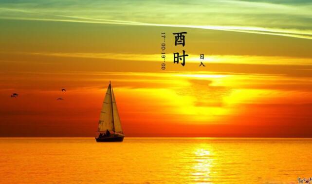 酉时是一天的第十个时辰,又被称为日入,日落等。这个时候是太阳落山的时候,酉时就是现在时间的17点到19点。