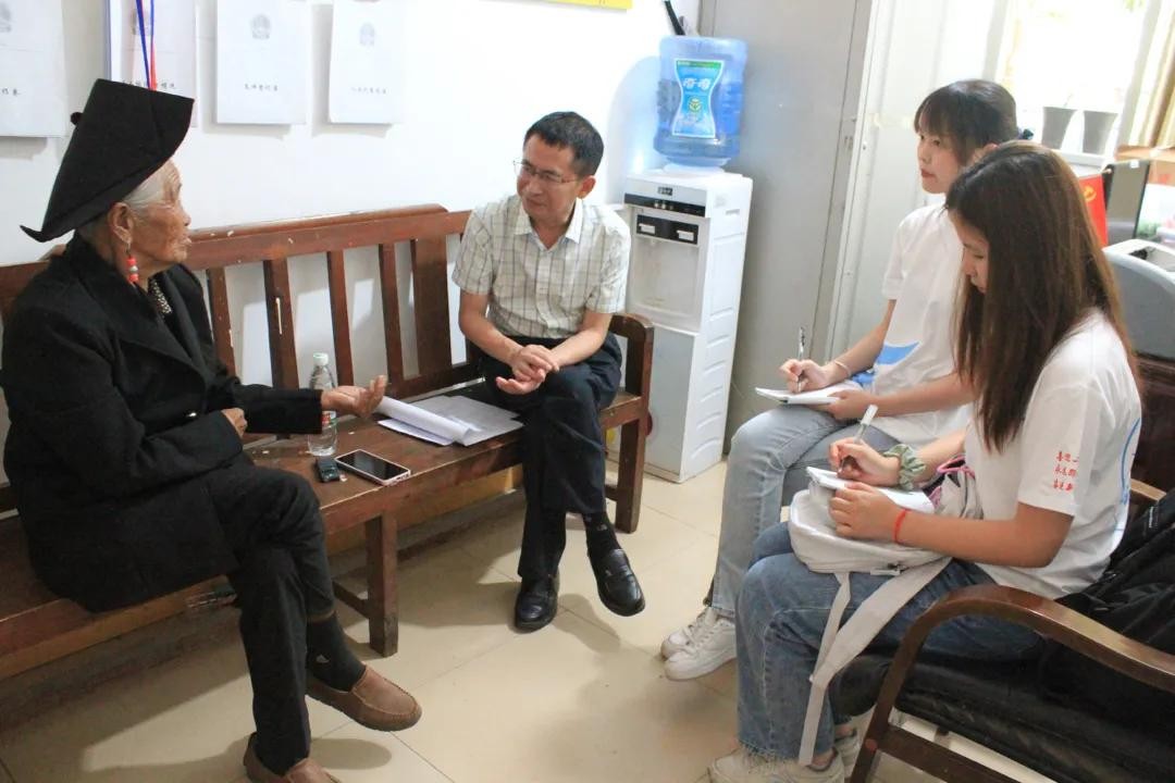 图为调研团队采访民主改革亲历者——彝族奶奶窝姆达母。