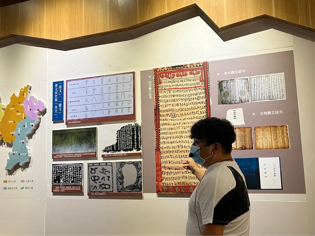 图为讲解员带领调研团队参观凉山彝族奴隶社会博物馆并讲述了彝族人民的历史起源和发展现状。