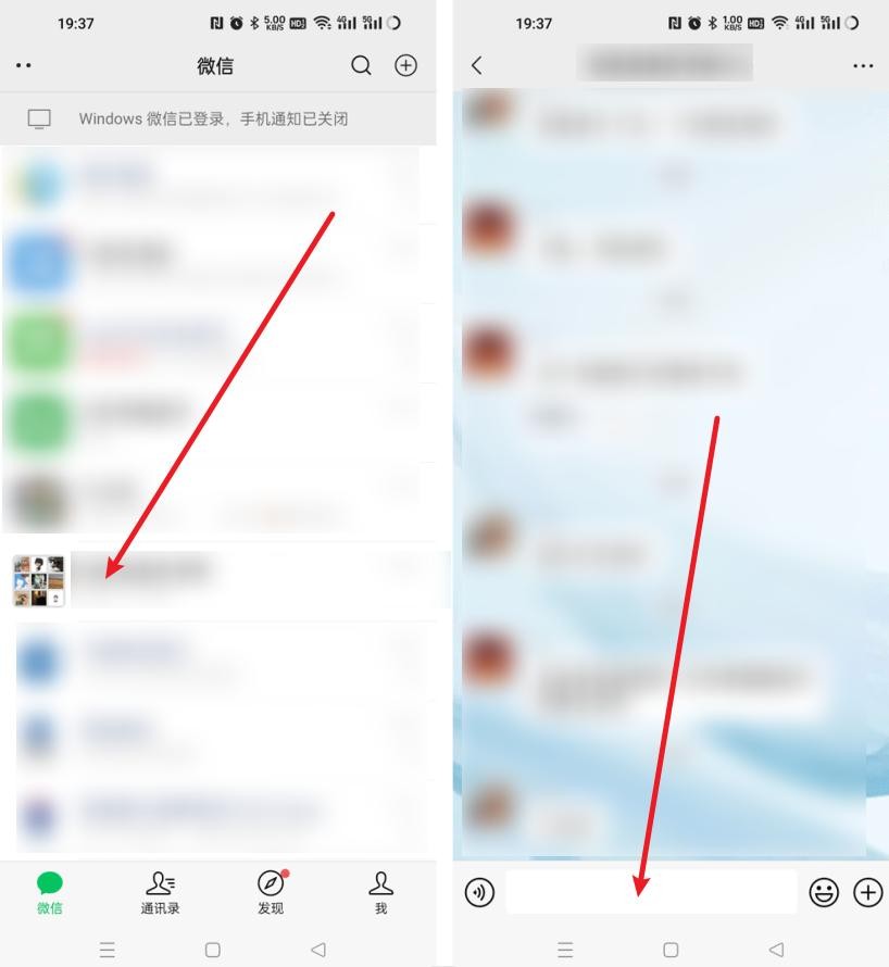 1、打开我们的微信,在聊天中找到你想要艾特所有人的群聊,然后点击输入框弹出键盘;