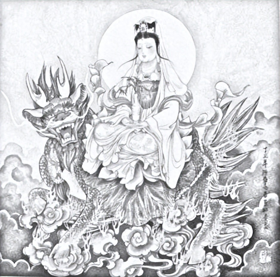 金毛犼又名 “朝天吼”,华表柱顶之蹬龙对天咆哮,被视为上传天意,下达民情。观音菩萨作为慈悲的象征,以救度众生为己任,上求佛道,下化众生。金毛犼的这一特性与菩萨的行为相互吻合。在民间传说中,犼具有守望的习惯,时刻关注着世间的动态,一旦发现天子久游不归或深居宫闱不理朝政,便会发出召唤,敦促天子回归正途,处理国是,体察民情。这种上传天意、下达民情的行为,体现了对国家和人民的关怀,与观音菩萨救苦救难、普度众生的使命不谋而合。
