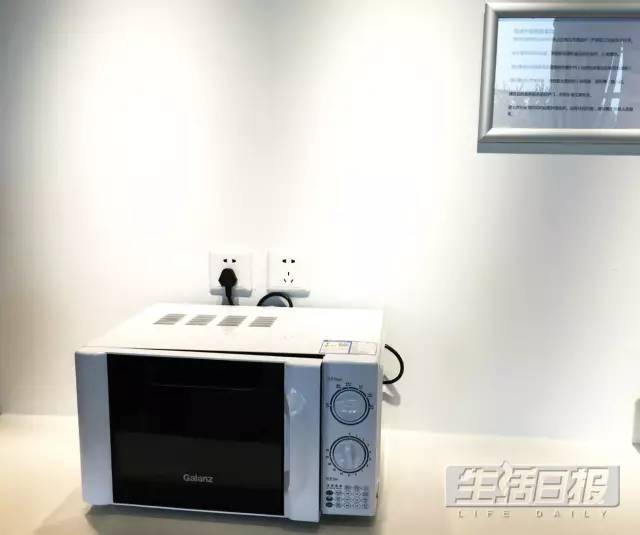 一墙之隔,准备了微波炉,饭凉了,可以加热一下▼
