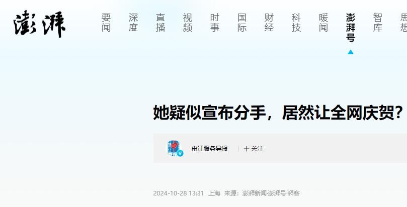 澎湃新闻:她疑似宣布分手,居然让全网庆贺?