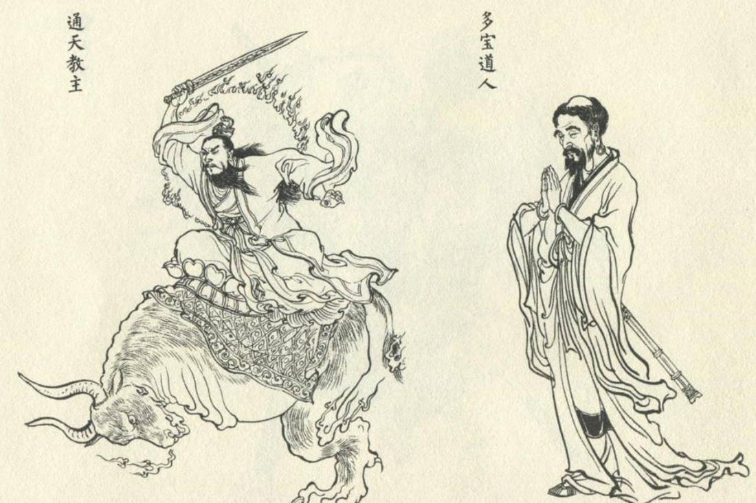 广成子走后,多宝道人向通天教主诬陷广成子说:“广成子骂吾教是左道傍门,不分披毛带角之人,湿生卵化之辈,皆可同群共处。他视我为无物,独称他玉虚道法为无上至尊,所以弟子等不服。”通天教主听信了谎言,遂命多宝道人在界牌关前摆下了一座诛仙阵。
