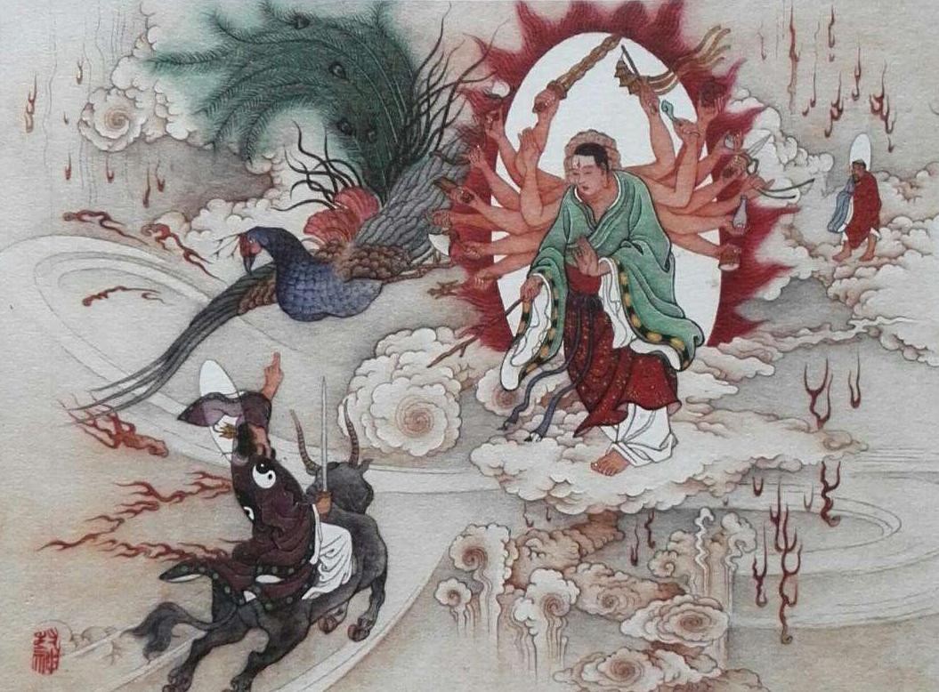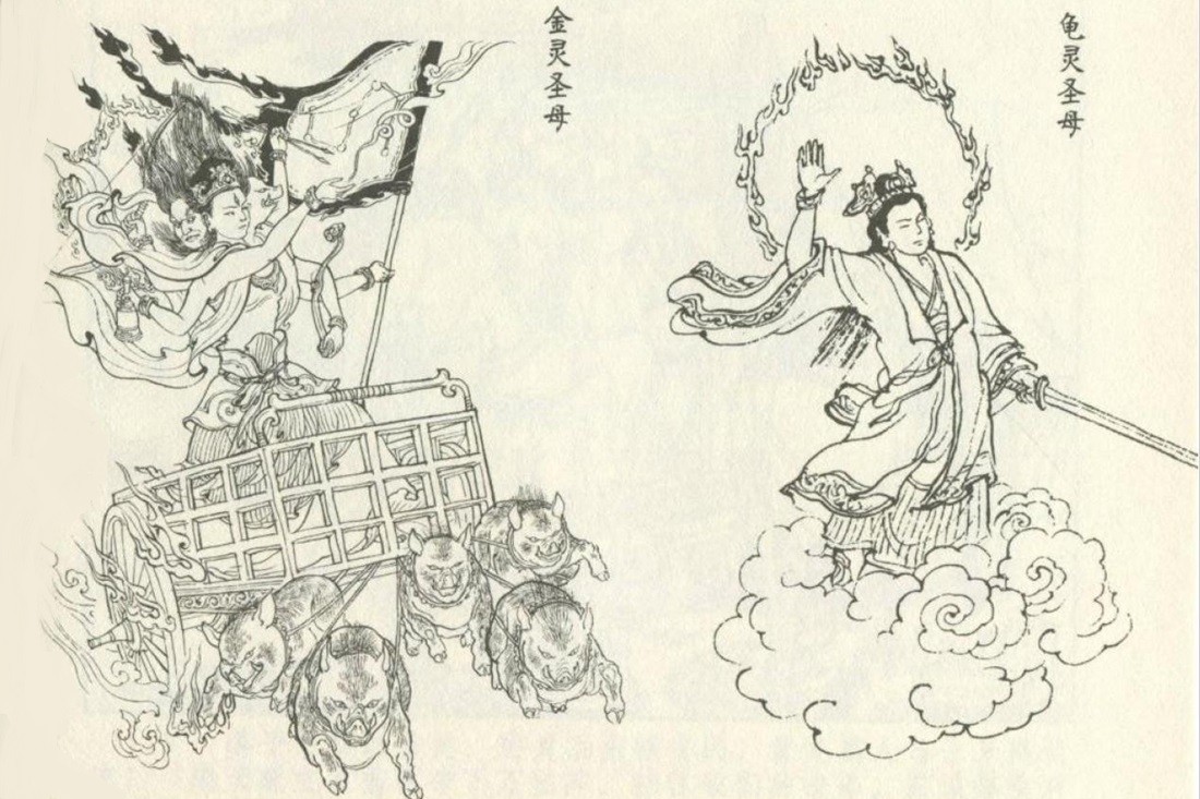 金光阵里灭圣母,公明面前难遮羞。