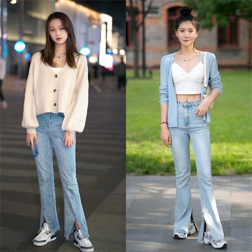 但是,对于刚开始尝试喇叭裤的姐妹们来说,选择常规款的喇叭裤会更好驾驭一点。再搭配上一双帆布鞋,简约但不简单!