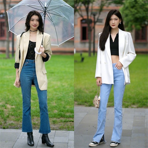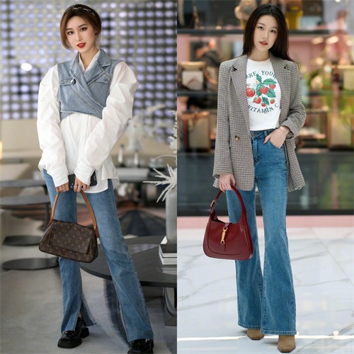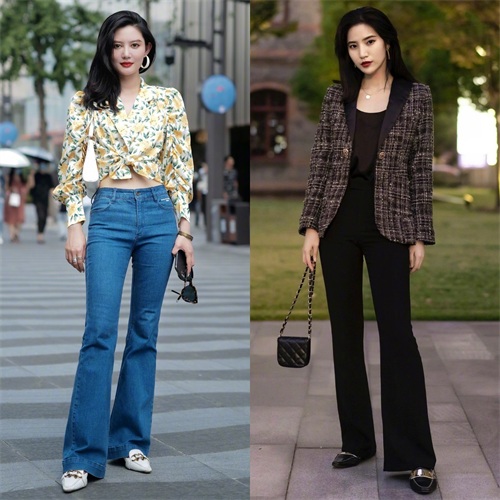 而本期内容,于小姐就带着大家一起来看看“喇叭裤”,它不仅能凸显出自己的臀胯部线条,还能藏匿自己的小腿赘肉,显高显瘦一手抓!