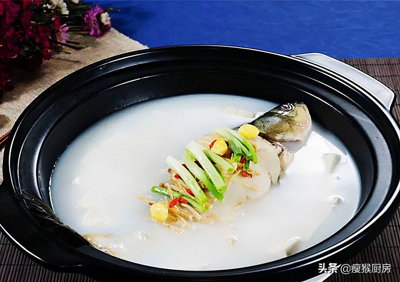肥王鱼加上猪瘦肉,再加上大葱、香菜和姜片等调料慢慢熬煮出来的汤鲜香无比。
