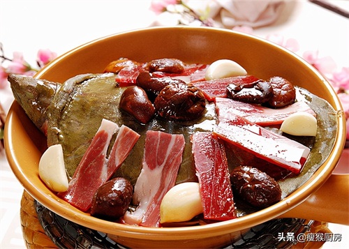 都知道甲鱼是大补的食材,特别是野生的甲鱼卖得特别贵,上千元一斤,不过这里说的是人工养殖的甲鱼,很便宜,菜市场里每天都能买到。甲鱼里蛋白质含量很高,加上火腿一起炖,汤鲜味美,是我们安徽人招待客人经常做的一道菜。